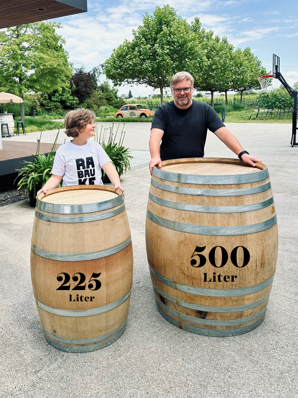 Gebrauchtes 500 l Fass aus Eichenholz mit Rotweinspuren, ausgestattet mit verzinkten Reifen. Die Fässer können sehr gut als Stehtisch verwendet werden. Die Fässer sind technisch in einem guten Zustand, aber nicht mehr für den Gebrauch von Lebensmitteln geeignet.